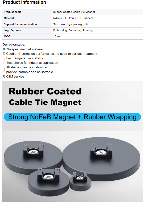 Rubber Coated Neodymium Magnetic Nylon Cable Tie Holder Mounting Base for Holding Cable Wire Magnet