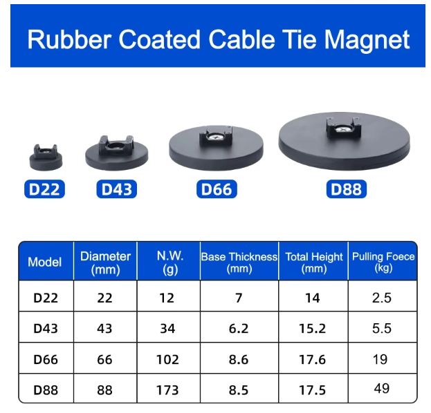 Rubber Coated Neodymium Magnetic Nylon Cable Tie Holder Mounting Base for Holding Cable Wire Magnet